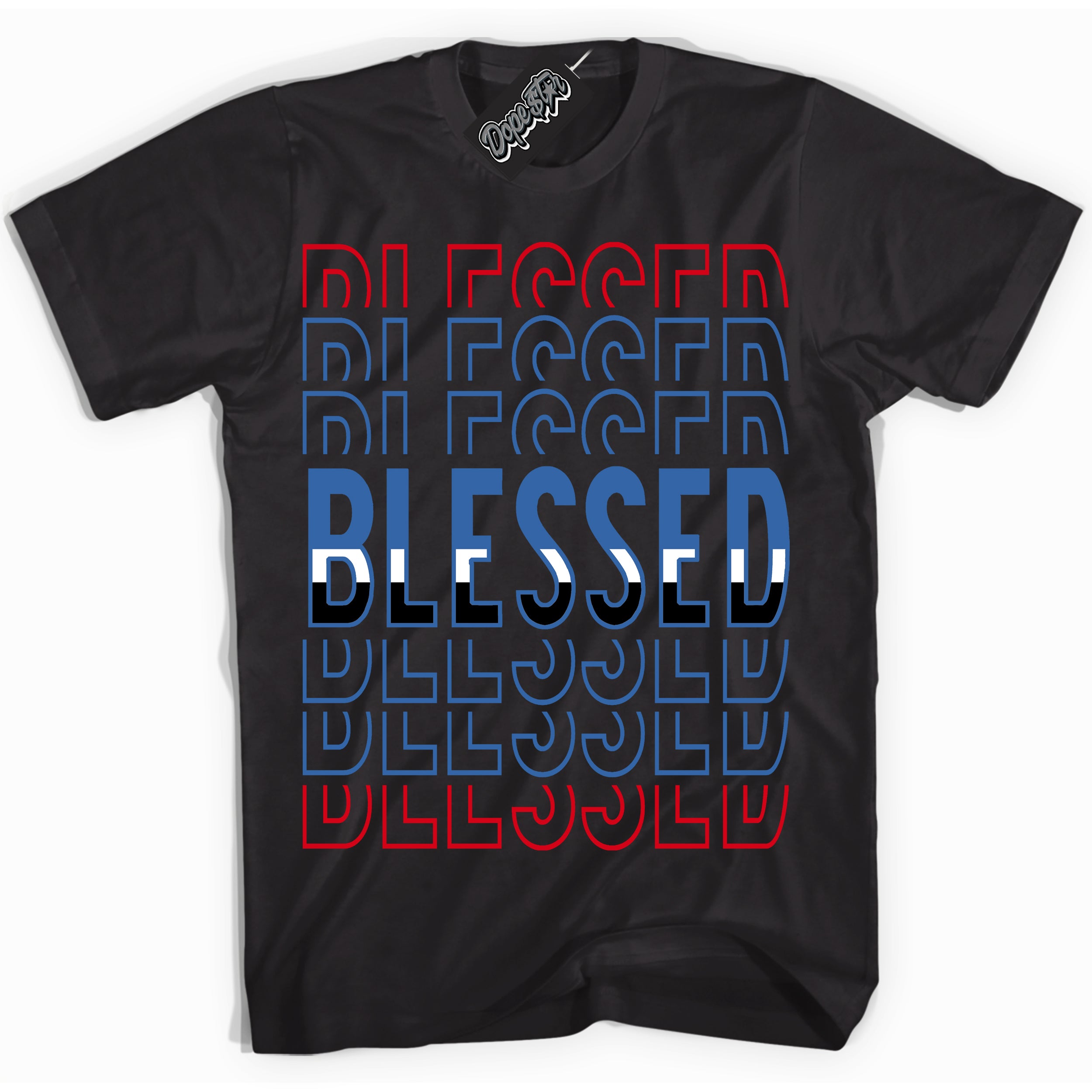 Industrial Blue Sashiko 1s DopeStar Shirt Blessed Stacked Graphic
