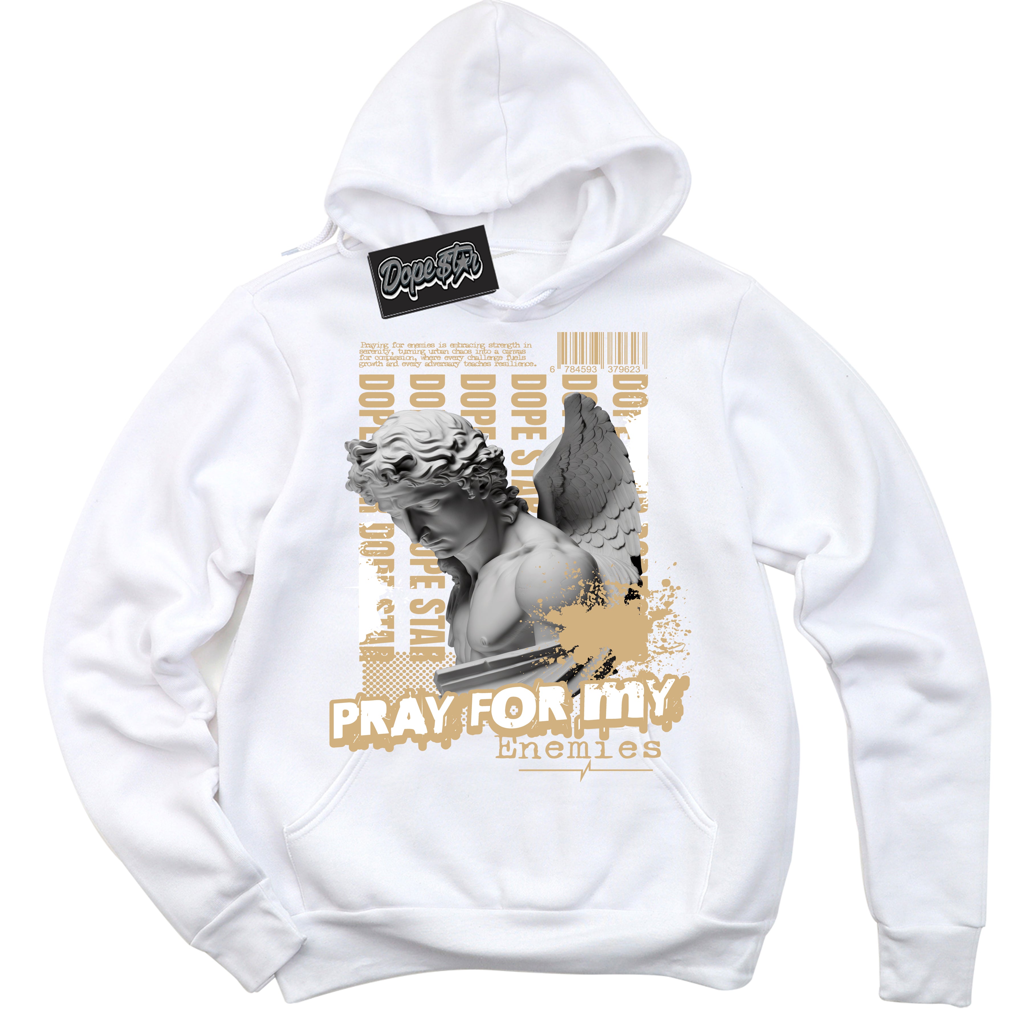 MVP White Metallic Gold Sneaker Hoodie Pray Enemies Graphic