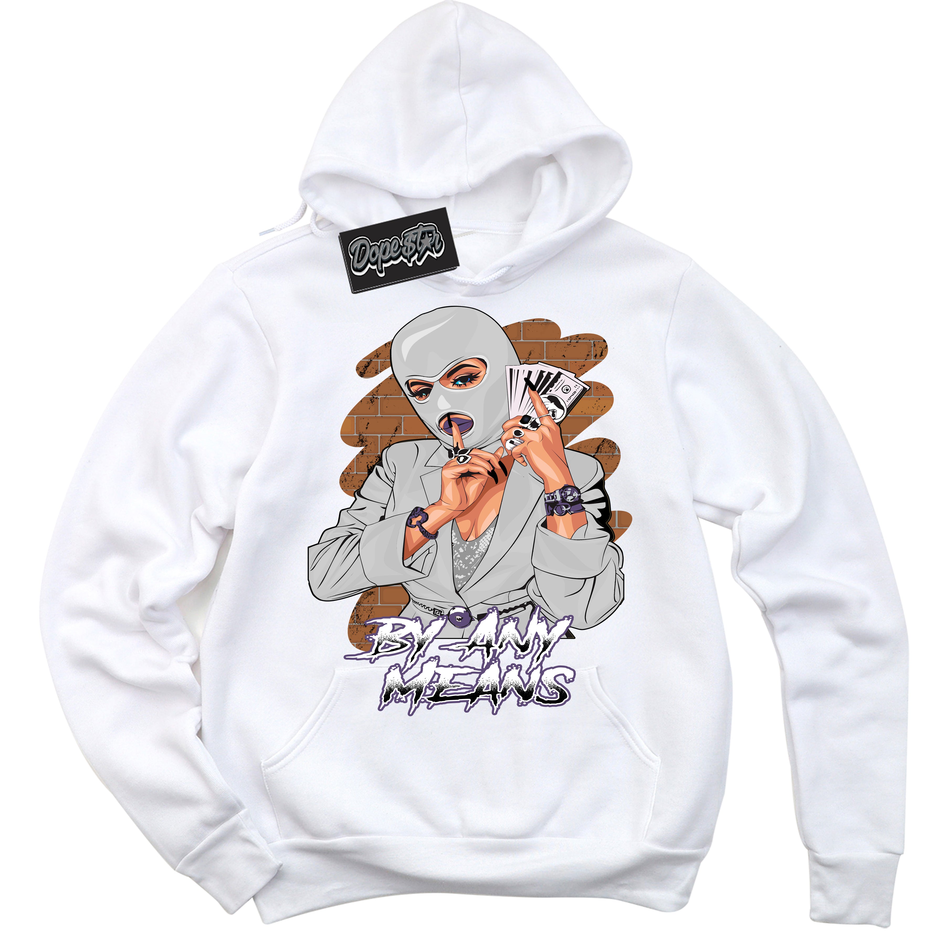 Cool White Hoodie with “ By Any Means ”  design that Perfectly Matches Punk Rock 1s Sneakers.Cool Black Hoodie with “ By Any Means ”  design that Perfectly Matches Punk Rock 1s Sneakers.