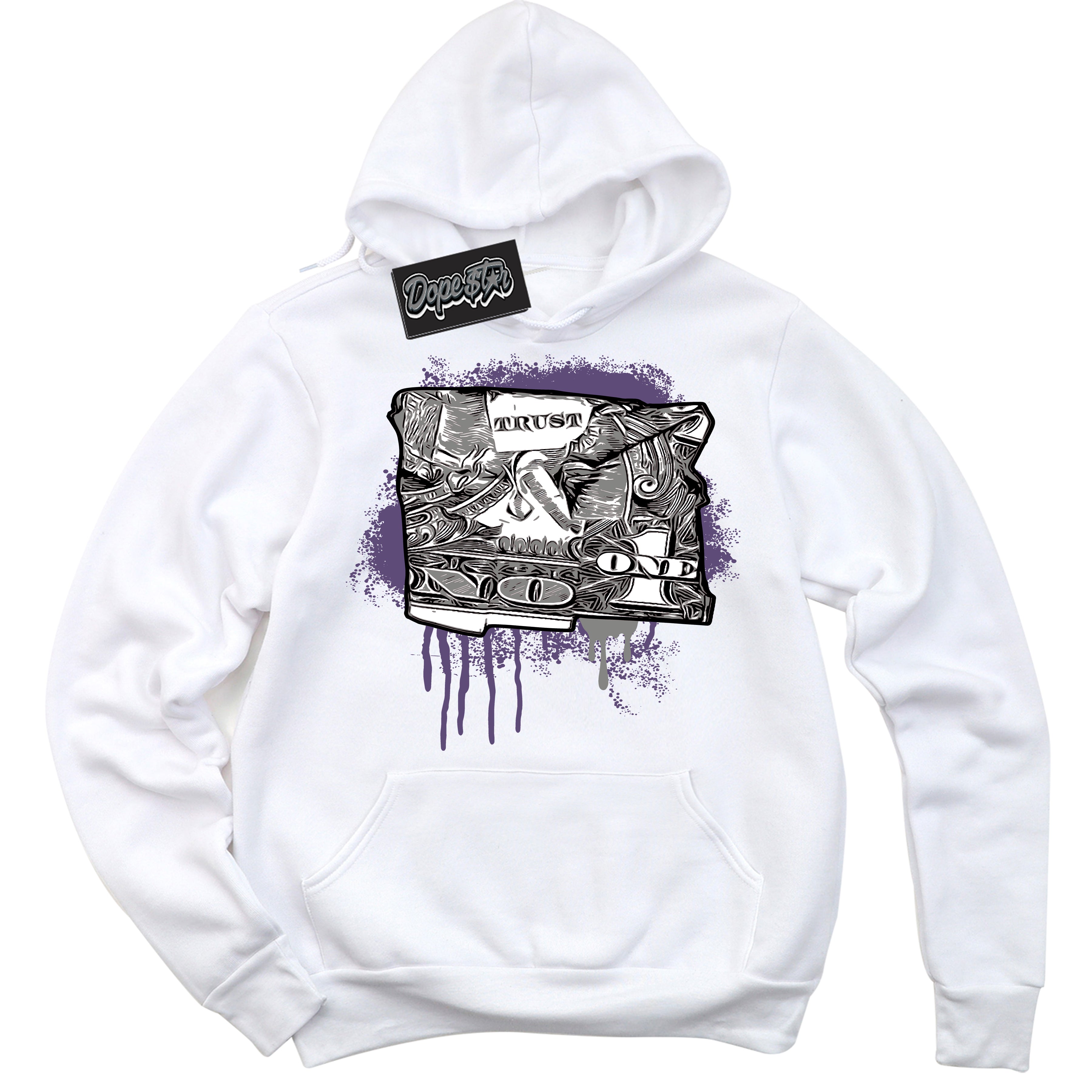 Cool White Hoodie with “ Trust No One Dollar ”  design that Perfectly Matches Punk Rock 1s Sneakers.Cool Black Hoodie with “ Trust No One Dollar ”  design that Perfectly Matches Punk Rock 1s Sneakers.