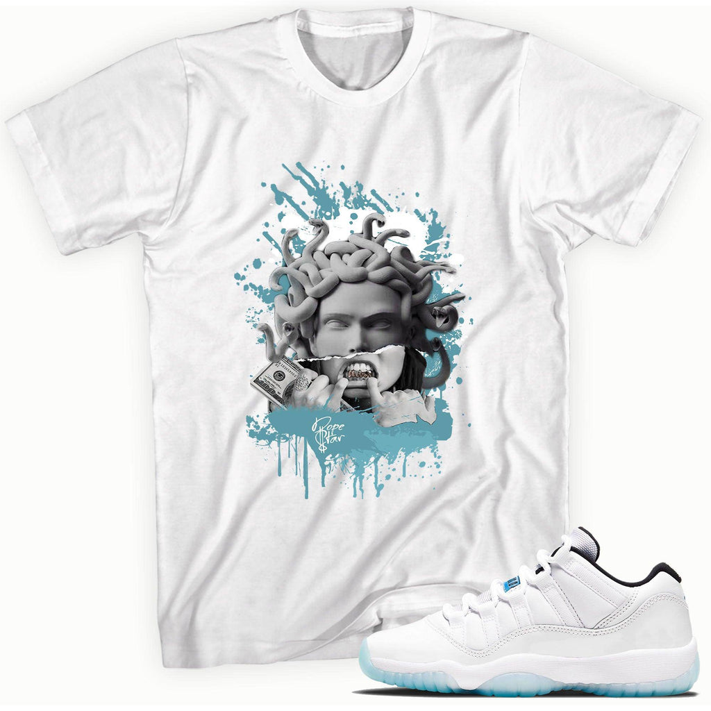 11s Low Legend Blue Shirt Medusa