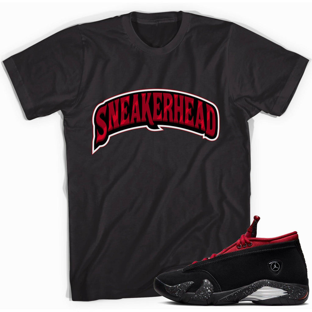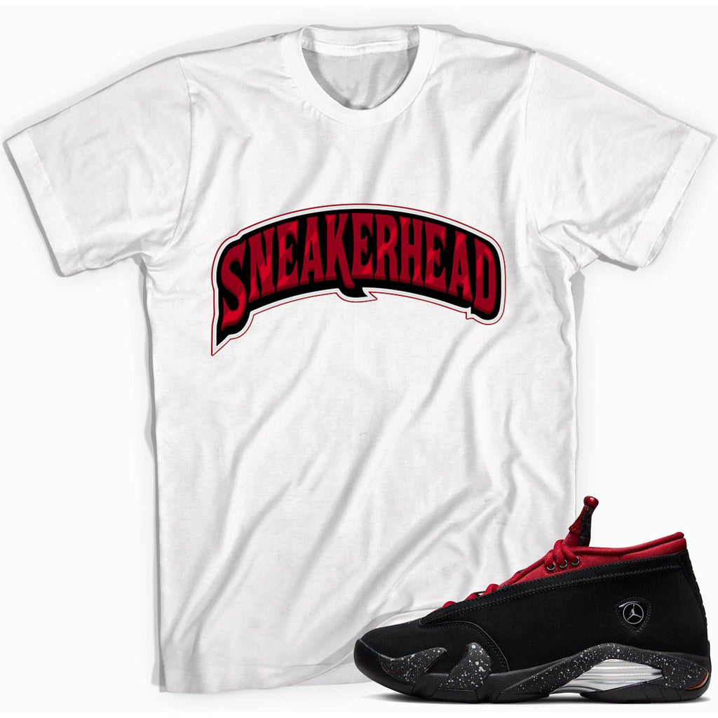 Sneakerhead Shirt by Dopestar Clothing® will Match Air Jordan 14s Retro Low Red Lipstick Womens. Ladies look sharp and fashionable in this tee and your kicks. The bold design stands out with white and black accents. Craft a custom style in the Sneakerhead Shirt and AJ 14s Retro Low Red Lipstick for Women.