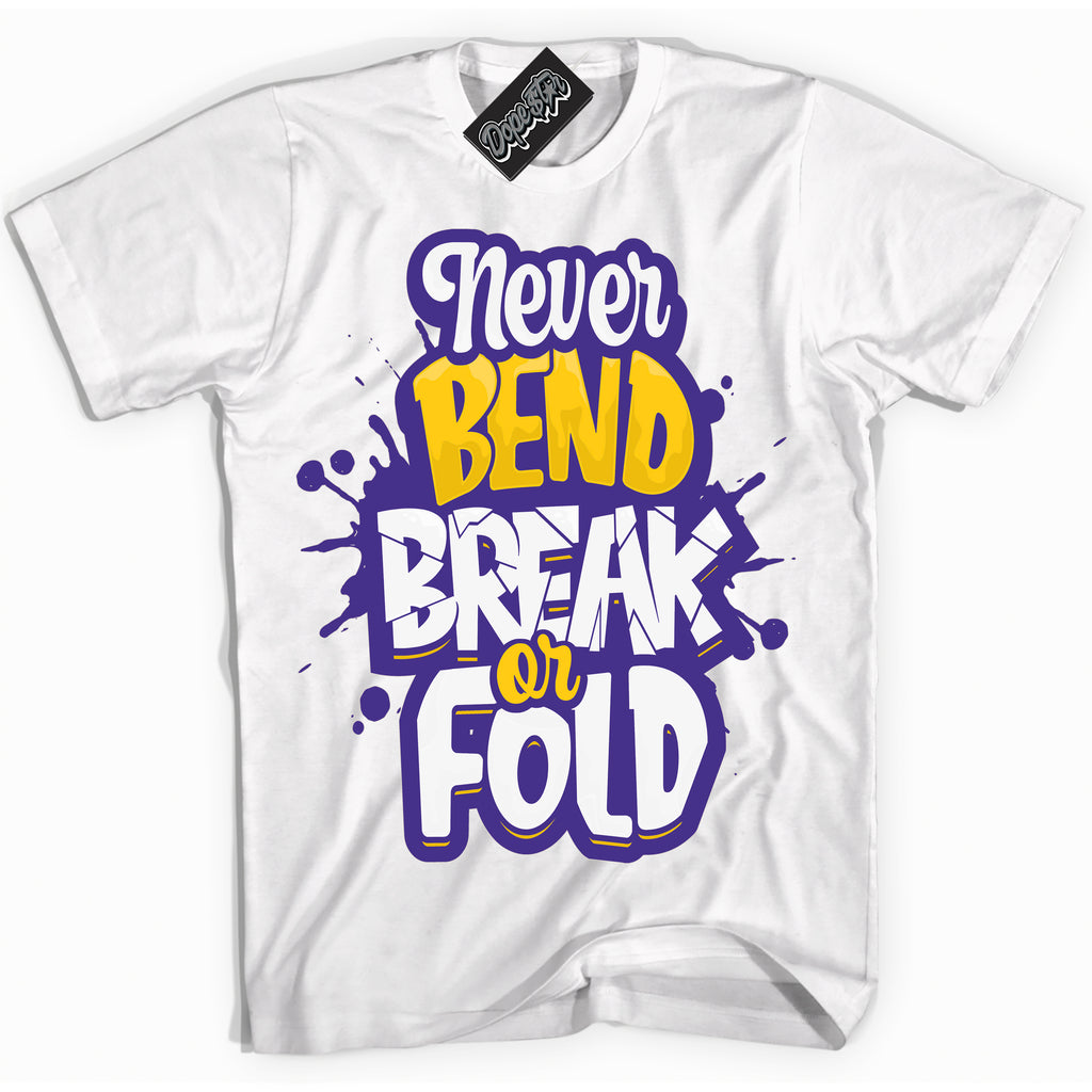 Never Bend Break Or Fold Graphic Sneaker Shirt by Sneaker Shirts Outlet® ️is designed to perfectly match your Air Force 1 Low Retro QS Kobe Lakers Home.