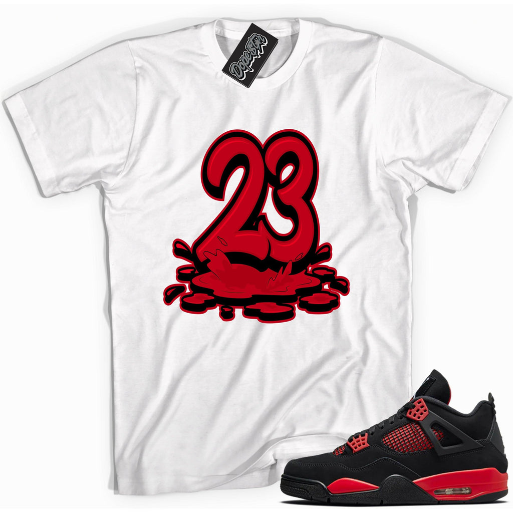 Conquer the Streets with the "Air Jordan 4 Red Thunder Shirt - 23 Melting," a striking piece for the urban trendsetter, masterfully crafted to match the intensity of the AJ 4 Red Thunder sneakers. This shirt raises the standard from casual wear to a symbol of street prowess and vibrant style. 🌩️👕