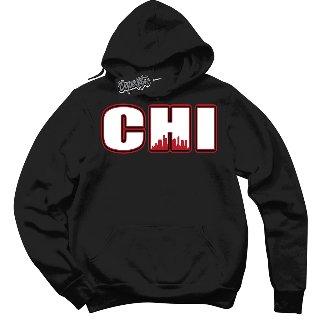 Chicago Graphic Sneaker Hoodie by Sneaker Shirts Outlet® is designed to perfectly match your Dunk Low Black Toe Bright Crimson.