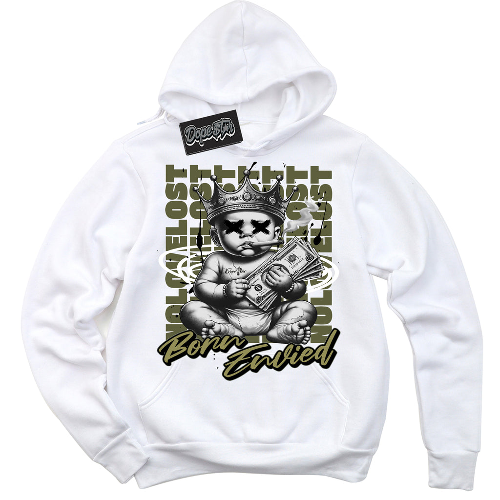 Born Envied Graphic Sneaker Hoodie by Sneaker Shirts Outlet® is designed to perfectly match your Craft Olive 4s.