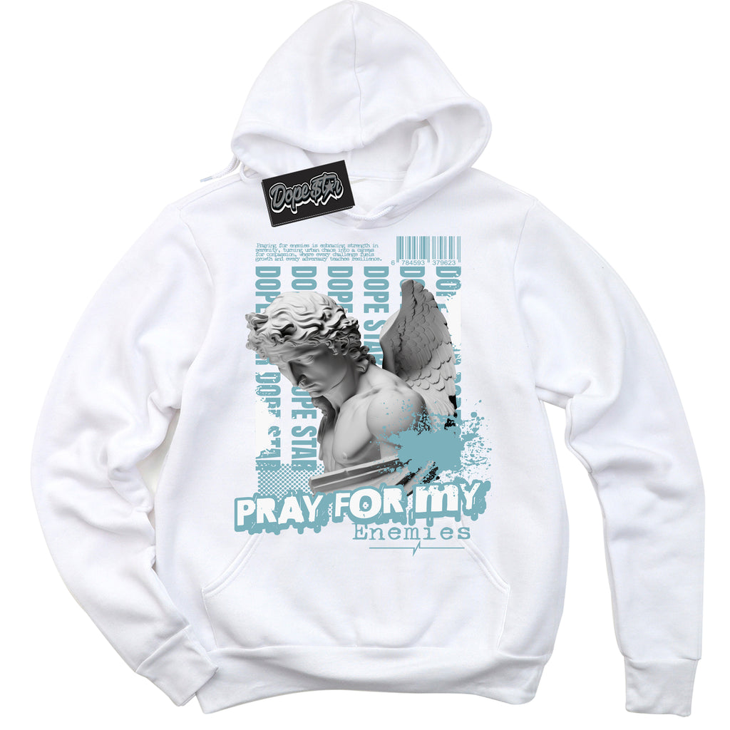 Pray Enemies Graphic Sneaker Hoodie by Sneaker Shirts Outlet® is designed to perfectly match your Denim Turquoise Dunk.