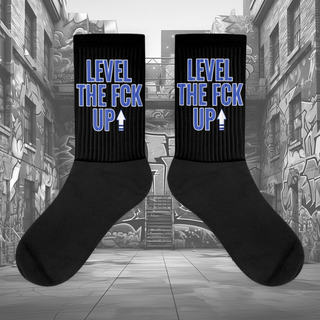 ‘ LEVEL UP ‘ Introducing our exclusive socks, designed to perfectly complement the Nike Dunk Disrupt 2 Hyper Royal sneakers, brought to you by Dope Star Clothing®. These socks are a blend of style and functionality, characterized by: