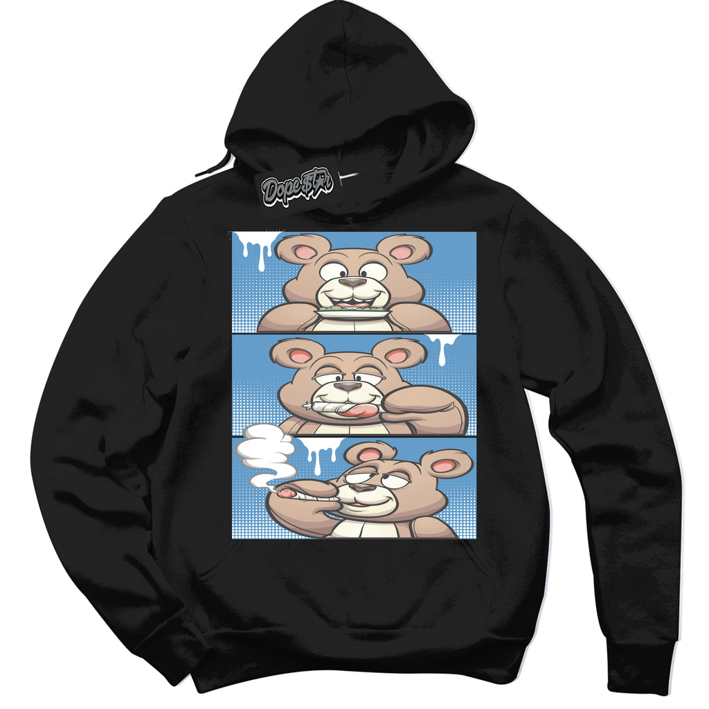 Roll It Lick It Smoke It Bear Graphic Sneaker Hoodie by Sneaker Shirts Outlet® is designed to perfectly match your Jordan 1 Mid Legend Blue.