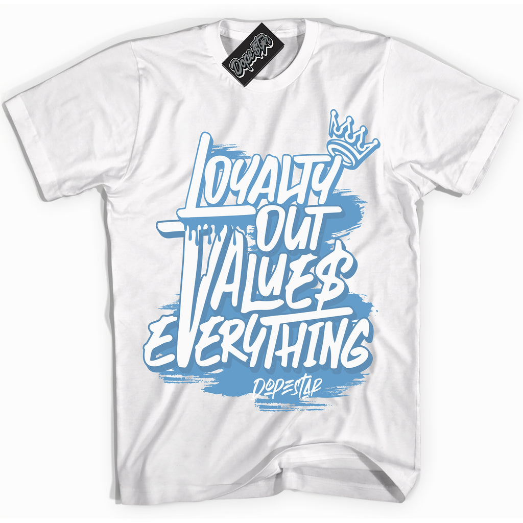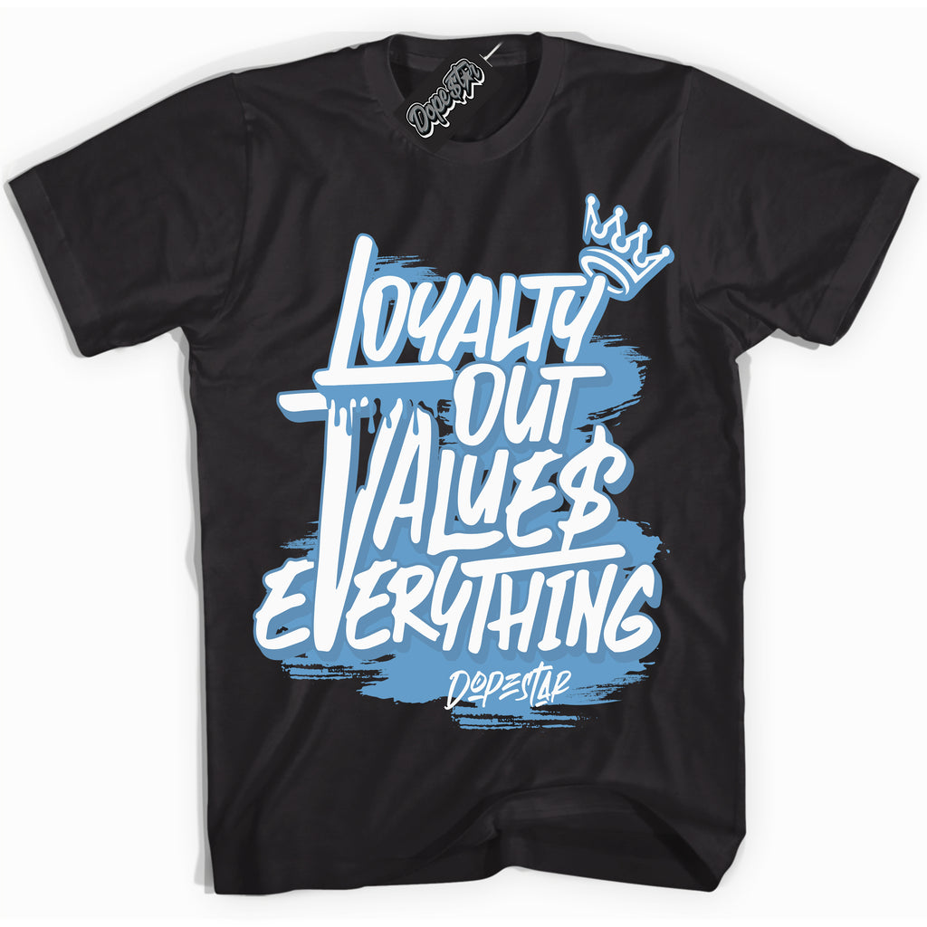 Loyalty Out Values Everything Graphic Sneaker Shirt by Sneaker Shirts Outlet® ️is designed to perfectly match your Jordan 1 Mid Legend Blue.