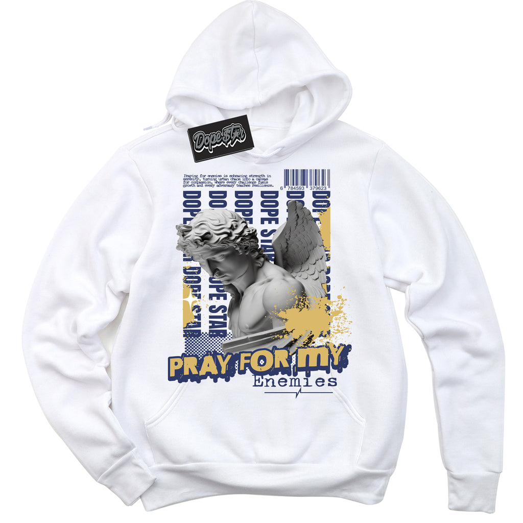 Pray Enemies Graphic Sneaker Hoodie by Sneaker Shirts Outlet® is designed to perfectly match your Jordan 1 Low Method of Make Midnight Navy Metallic Gold.