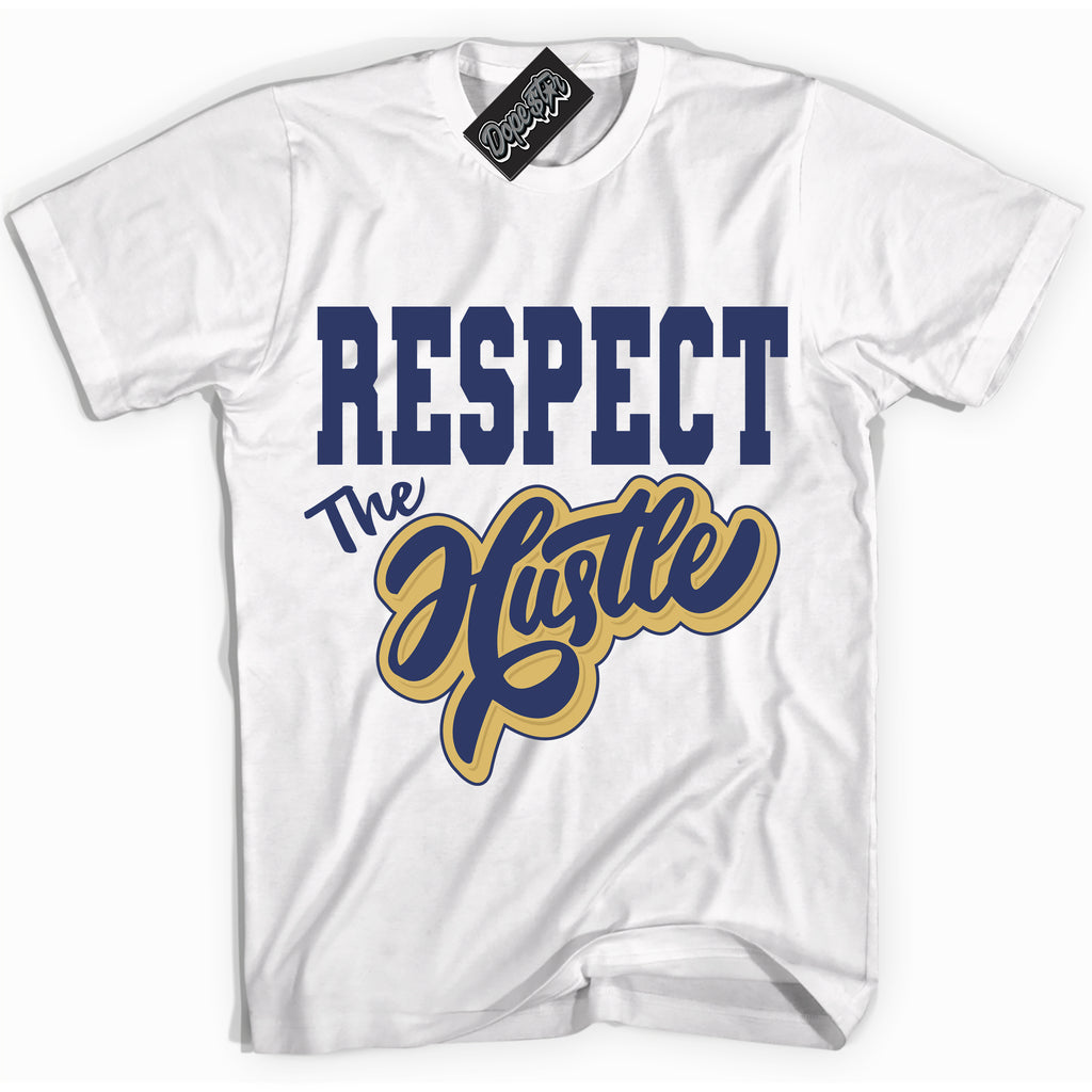 Respect The Hustle Graphic Sneaker Shirt by Sneaker Shirts Outlet® ️is designed to perfectly match your Jordan 1 Low Method of Make Midnight Navy Metallic Gold.