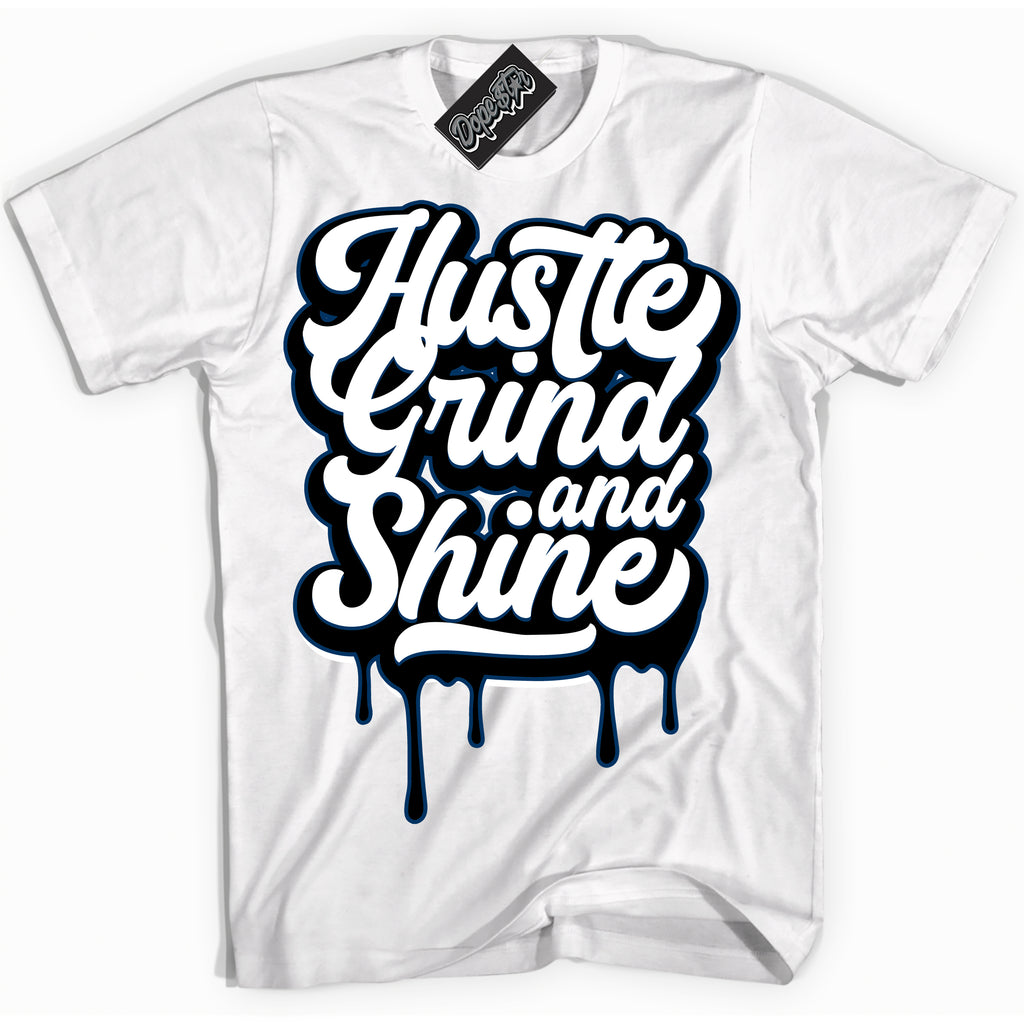 Hustle Grind And Shine Graphic Sneaker Shirt by Sneaker Shirts Outlet® ️is designed to perfectly match your Midnight Navy 1s.