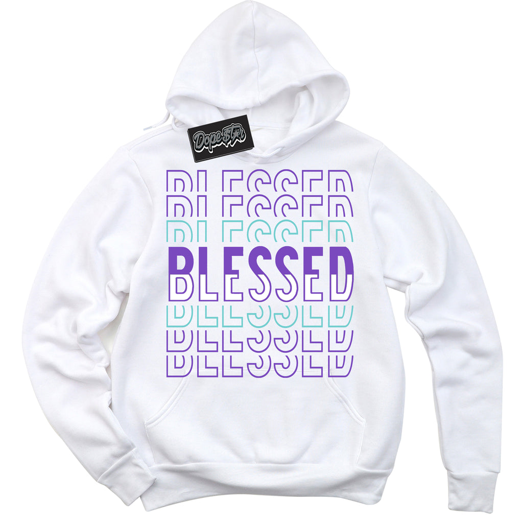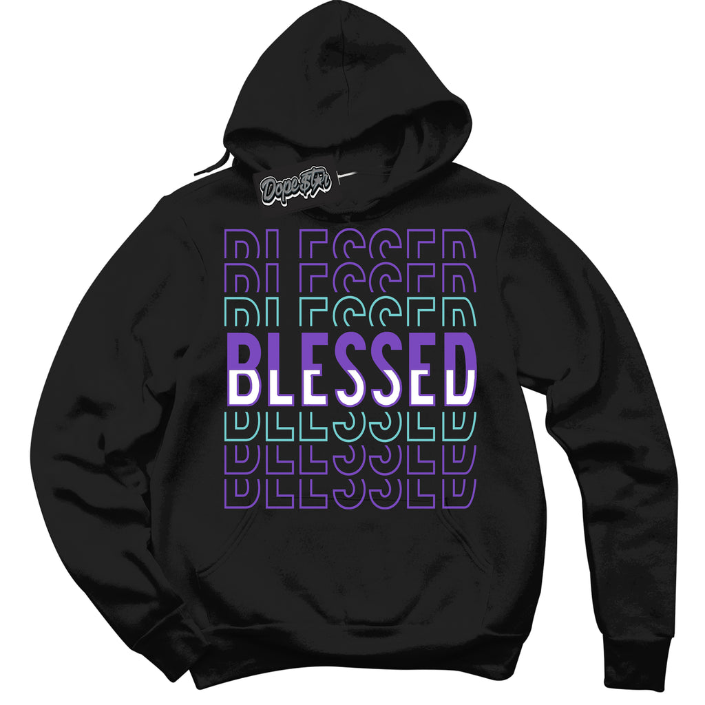 Blessed Stacked Graphic Sneaker Hoodie by Sneaker Shirts Outlet® is designed to perfectly match your Psychic Purple Hyper Jade 1s.