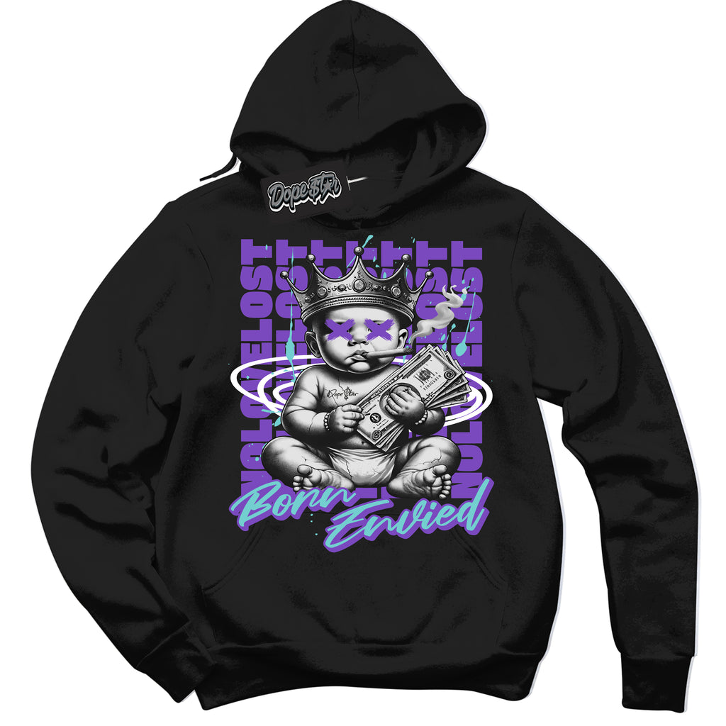 Born Envied Graphic Sneaker Hoodie by Sneaker Shirts Outlet® is designed to perfectly match your Psychic Purple Hyper Jade 1s.