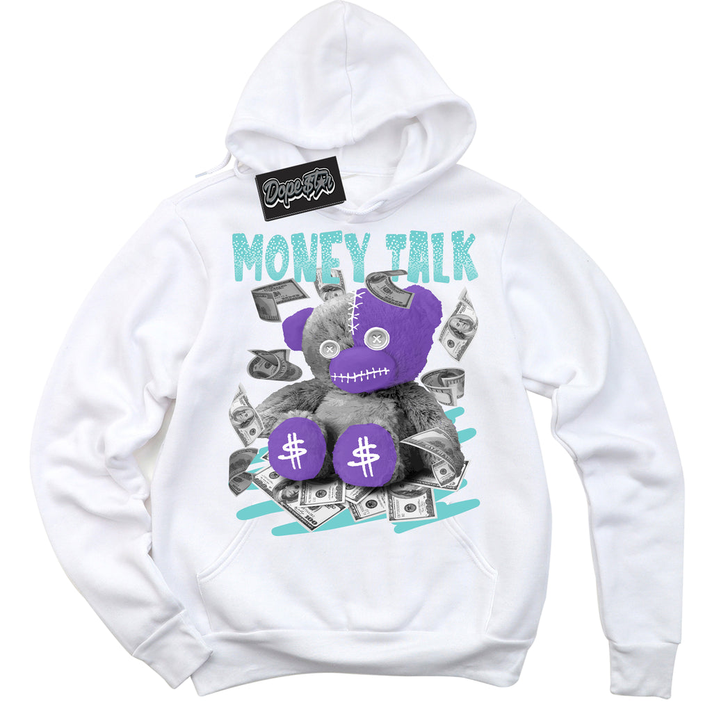 Money Talk Bear Graphic Sneaker Hoodie by Sneaker Shirts Outlet® is designed to perfectly match your Psychic Purple Hyper Jade 1s.