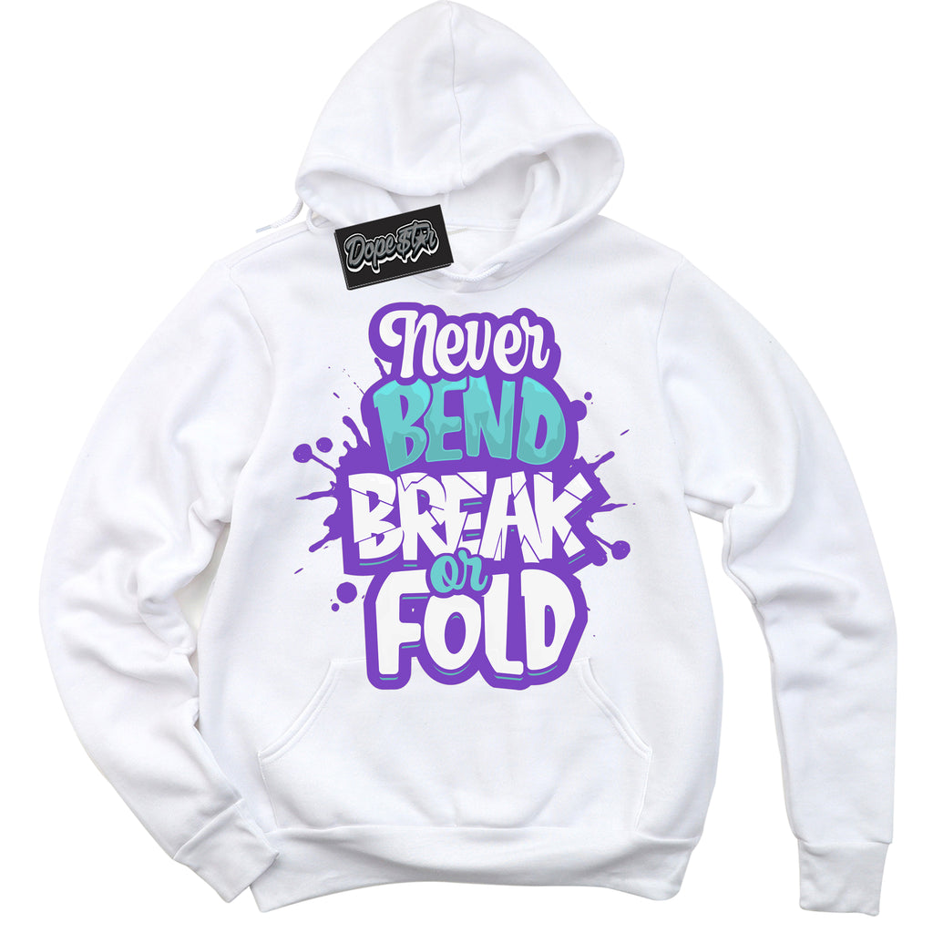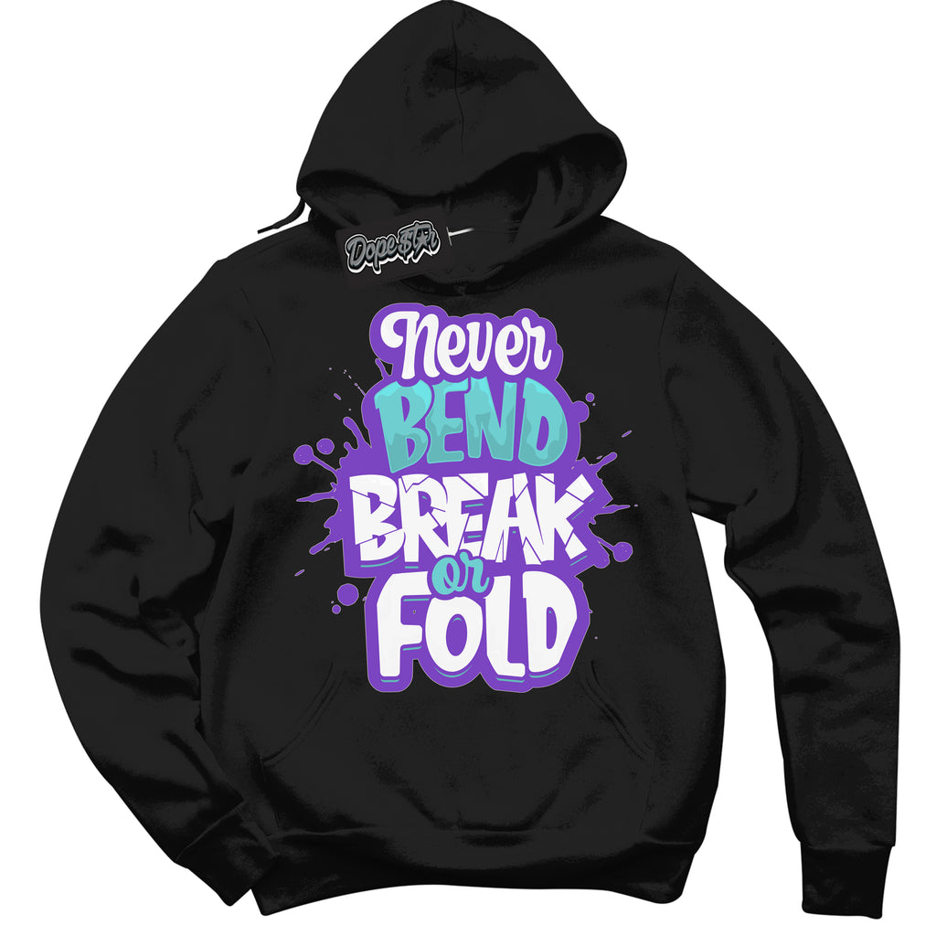 Never Bend Break Or Fold Graphic Sneaker Hoodie by Sneaker Shirts Outlet® is designed to perfectly match your Psychic Purple Hyper Jade 1s.