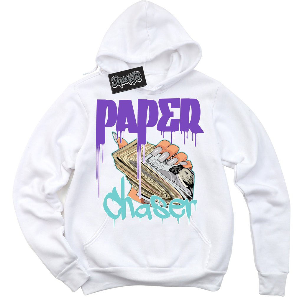 Paper Chaser Graphic Sneaker Hoodie by Sneaker Shirts Outlet® is designed to perfectly match your Psychic Purple Hyper Jade 1s.