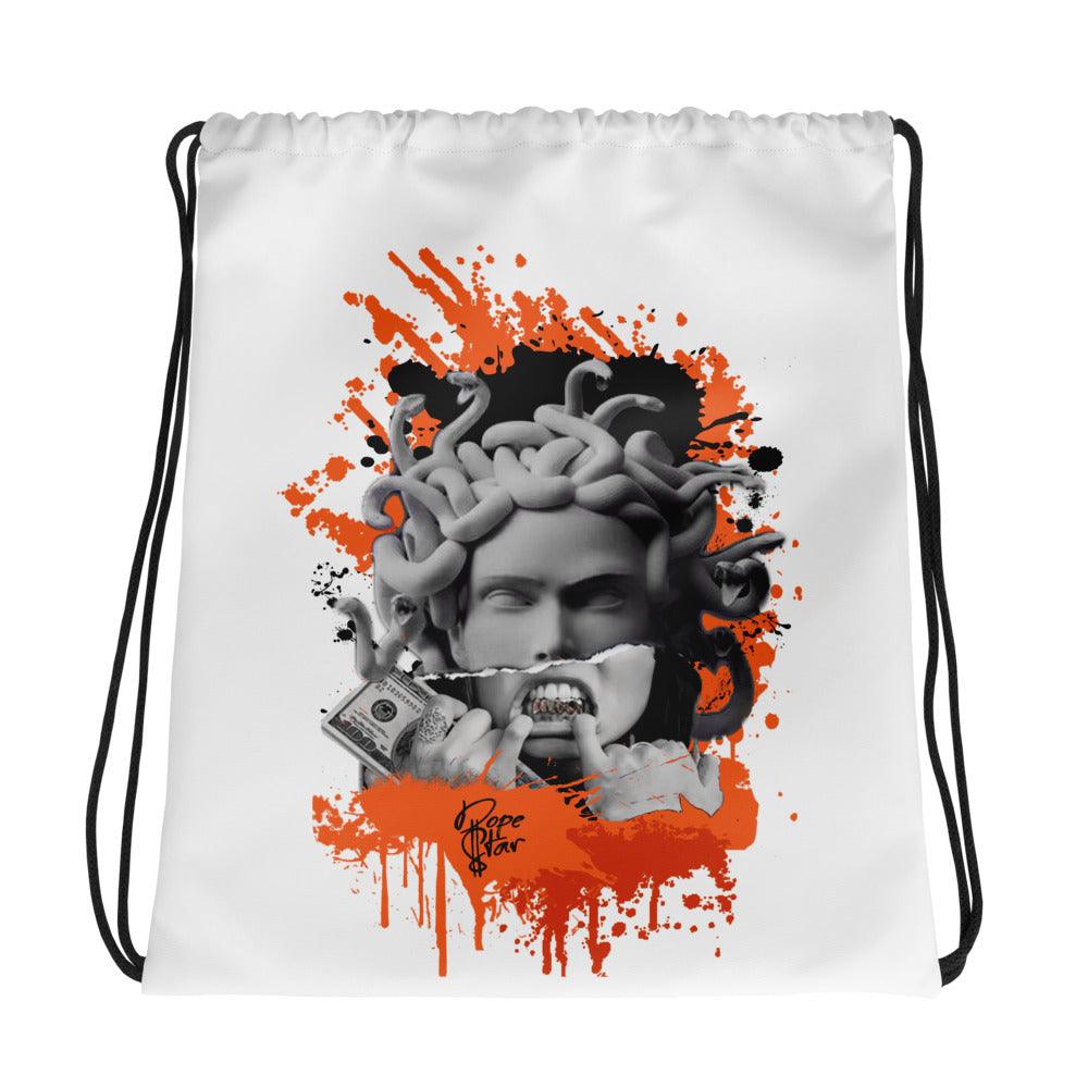 WNBA All-Star Brilliant Orange 12s DopeStar Drawstring Bag MEDUSA (White)
